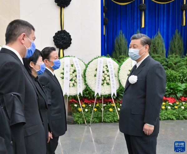 3月23日,何鲁丽同志遗体在北京八宝山革命公墓火化。习近平、栗战书、汪洋等前往八宝山送别。这是习近平向何鲁丽亲属表示深切慰问。新华社记者 李涛 摄