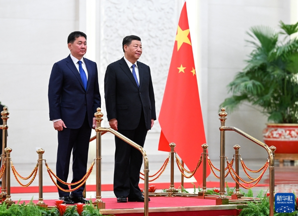 习近平欢迎呼日勒苏赫访华。习近平指出,我们时隔两月如约再次会面,充分体现了中蒙关系的高水平。中蒙互为重要邻国,保持中蒙长期稳定的睦邻友好合作关系,符合两国人民根本利益。中国坚持亲诚惠容理念和与邻为善、以邻为伴周边外交方针,高度重视深化中蒙友好互信和利益融合。双方携手抗疫,守望相助,弘扬了传统友谊。两国各领域交流合作不断走深走实,树立了国与国交往的典范。面对不稳定性不确定性日益上升的国际环境,中方愿同蒙方以构建两国命运共同体为引领,推动中蒙全面战略伙伴关系行稳致远,更好造福两国人民。