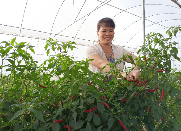 在顺天镇百亩航天辣椒种植基地工作的当地村民正在采摘辣椒